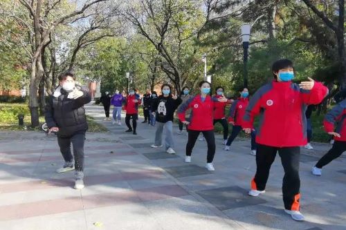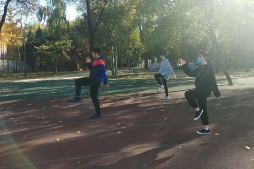 11月1日下午,体育课程教学活动武术培训在冠军之路进行,中国武术学院2019级本科生黄琦、吴俣带领同学们继续进行二十四式太极拳的学习。