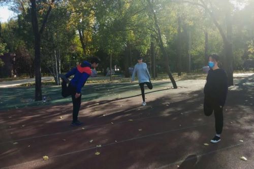 活动开始,曹丁可首先带领同学们进行了热身,随后他向同学们展示了一些田径运动的基本锻炼项目,并逐一纠正同学们的动作,同学们都积极跟随教练进行尝试,最后进行了跳远训练。在培训的过程中,大家在初步掌握了跳远的基本动作要领的同时也加深了自己对于田径运动精神的理解。