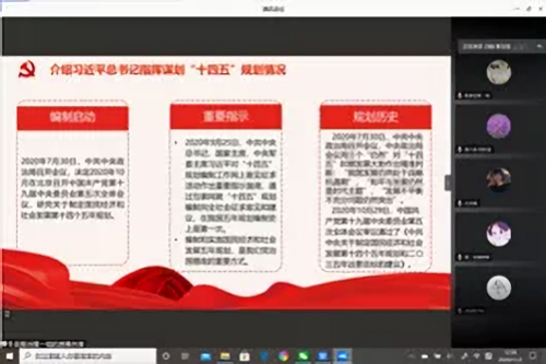 会上,张荣子首先带领同学们观看了《新闻联播》中有关十九届五中全会内容的节选。