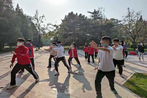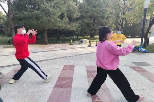 10月25日下午,体育课程教学活动武术培训在冠军之路进行,中国武术学院2018级本科生邵银霜、2019级本科生黄琦、吴俣带领同学们进行了二十四式太极拳的学习。