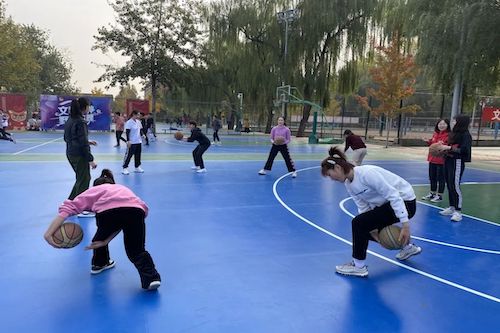 课程开始,巴湘子带领同学们进行了热身练习,在这节课中,巴湘子首先带大家熟悉了如何去运球、高位和低位运球发力的部位不同;接下来,同学们学习了体前转换方向运球、胯下前后运球、从背后向上运球。最后大家一起做了两个小游戏,增进了团队学员之间的了解。