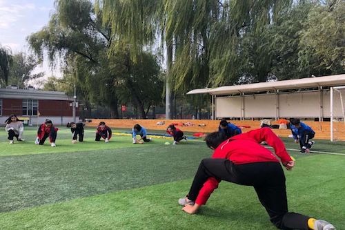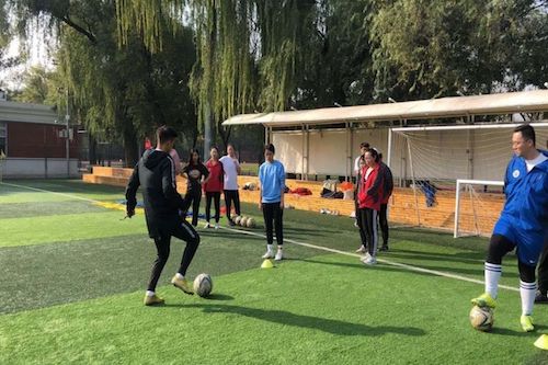 10月25日上午,体育课程教学活动足球培训在1号足球场进行,中国足球运动学院学生会教练裁判部的同学带领同学们开展了足球知识技能的学习。