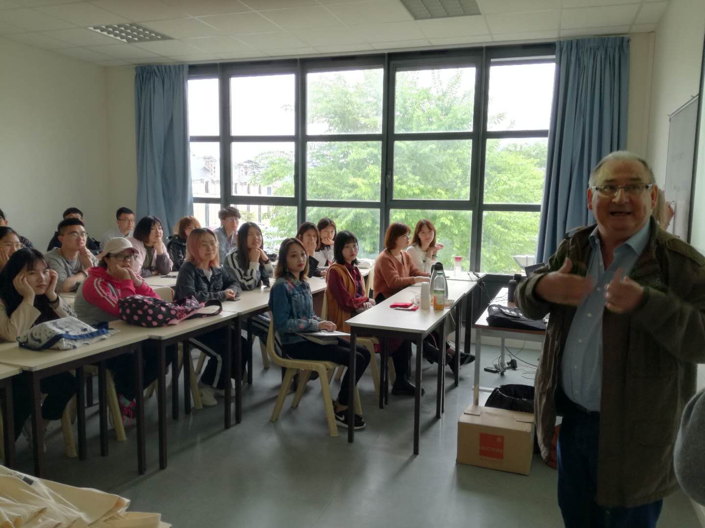 初到奥尔良大学,语言生疏,与老师交流起来还有些障碍,同学们也不太适应学校与中国不同的上课模式,这里的学习更加依靠同学们的自发性和主动性。在全体师生的共同努力下,法语班的同学们组成了学习小组,互相帮助,调整学习方法,更加积极地与奥尔良大学老师交流沟通,逐渐建立起师生默契,同学们的学习状态也渐入佳境。