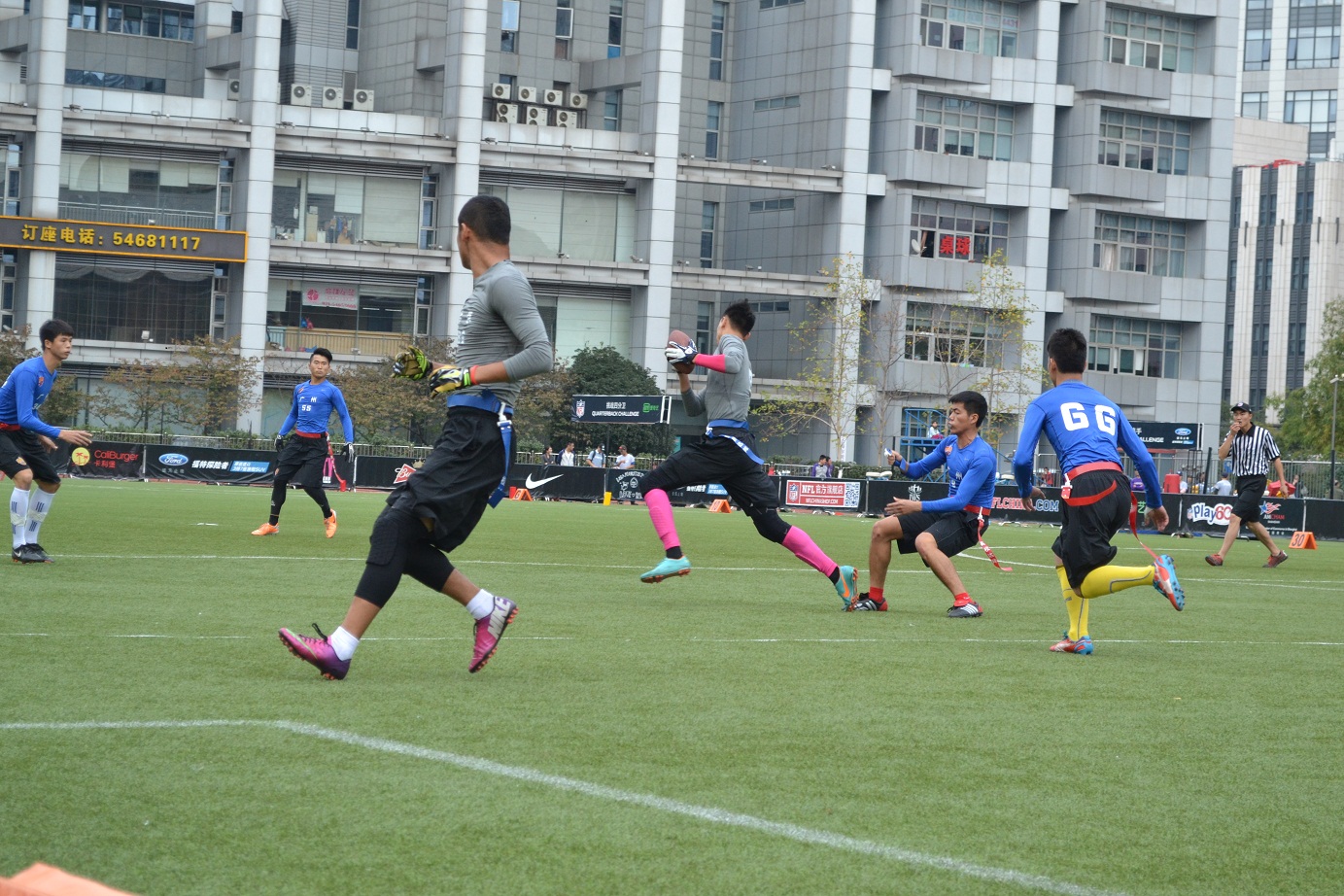周日下午的上海卢湾体育场橄榄球气氛浓烈,达阵风暴的队员们早早进入场地进行热身,接球、扯旗、踢球,一切热身活动都在有条不紊的进行中。下午两点,总决赛正式开始,北体面对的对手是广州赛区的冠军广州体育学院, 总决赛由PPTV和上海五星体育全程直播。