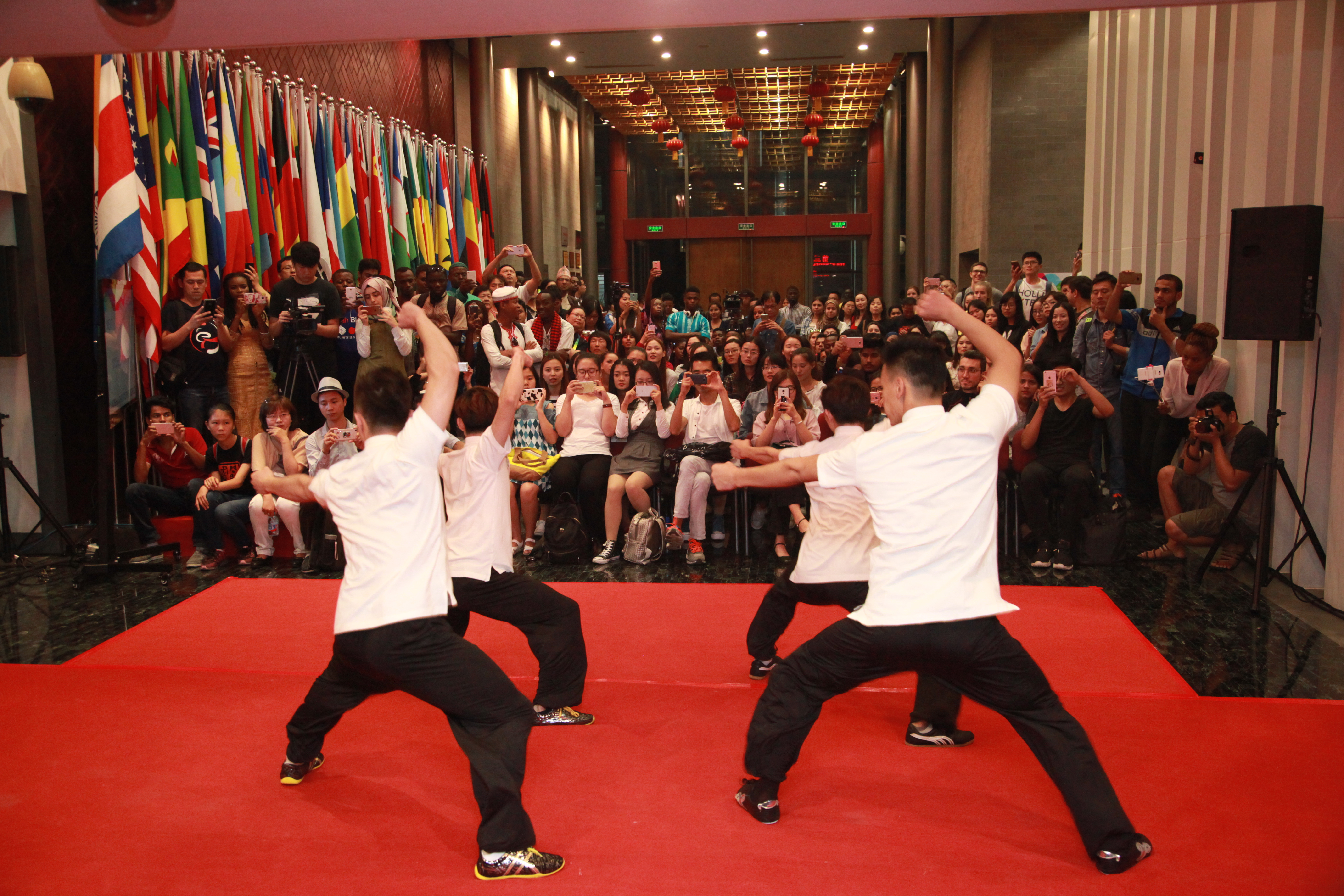 2016年9月23日,永利汉语国际推广武术师资培训基地应孔子学院总部要求,带领武术学院师生受邀参加以“多元文化在丝路”为主题的第三届孔子学院总部“开放日”活动。44个国家驻华使节、文化机构代表,国资委、国家体育总局、北京市教委、西城区区委区政府等部门代表,40多所孔子学院中方承办院校代表,部分支持孔子学院建设的企业代表,以及来自60多个国家的孔子学院奖学金生等300多人参加了此次活动。永利武术表演队在活动中进行了精彩的现场武术表展示,赢得了在场全体观众的热烈掌声。演出后各国观众纷纷与永利演员代表进行互动交流。此次活动不仅达到宣传推广中华武术文化的目的,同时也加强了我基地与海外各孔子学院的联系。