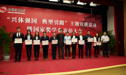 2017年11月29日上午10点,学校举办“兴体强国 典型引路”主题宣讲活动暨国家奖学金表彰大会。校党委副书记邢尚杰出席了表彰大会,党委宣传部、学生工作部、教务处、研究生院、科学技术处、团委等职能部门负责人和各学院负责人、全体辅导员、国家奖学金获奖者、各学院学生代表参加了大会。