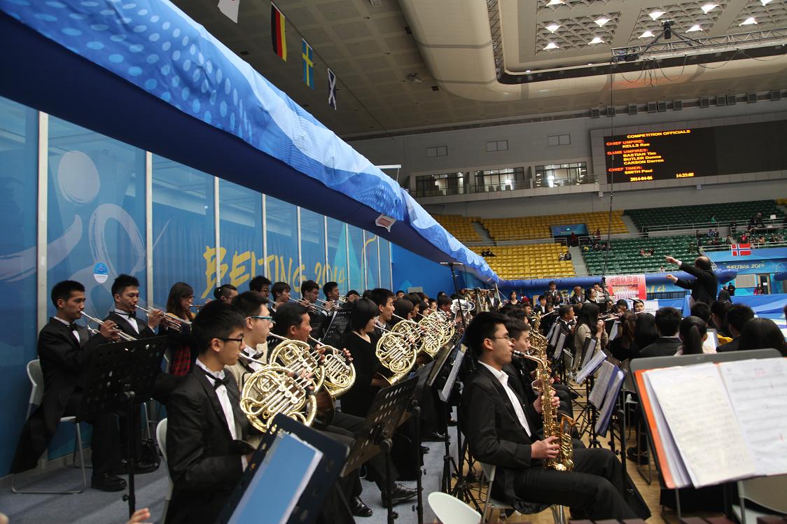本届世锦赛由世界冰壶联合会主办,国家体育总局冬季运动管理中心和北京市体育局共同承办,是国内举办的最高级别冰壶赛事。闭幕式上,12支参赛队伴随着永利管乐团演奏的《运动员进行曲》依次入场。其后,永利管乐团又相继演奏了《征服天堂》、《豪勇七杰》、《圆舞曲》、《征程》等精彩曲目,他们以北体人追求卓越的体育精神和充满活力的音乐演奏展现着北体风采。