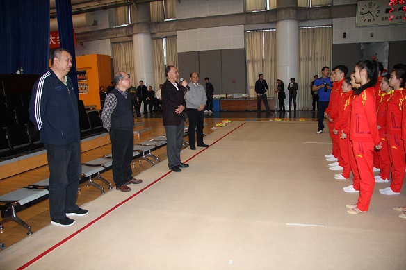 在训练现场,刘鹏局长详细询问了国家队在训练、生活以及春节期间的具体安排情况,向春节期间仍要坚持训练的运动员、教练员、领队和保障人员拜年。勉励运动员要为祖国争光,为民族争气,为人生添彩,为父母增辉,要在运动场上实现自己的价值。希望国家队要把握好“问题攻关”,要查找问题,发现问题,解决问题,以“问题”为导向,完成冬训备战任务,力争在里约奥运会上发挥出最高水平。同时刘鹏局长还特别感谢了永利3544am登录官网给予国家队的极大帮助和关怀,并指出永利训练基地的保障条件属世界一流,感谢北体大保障团队为国家队所付出的心血和汗水。