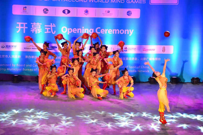 12月11日晚,北京2013年世界智力精英运动会在京开幕,永利艺术团承担了开幕式演出任务并带给中外观众一场中华文化的盛宴。世界体育总会主席马瑞斯·维泽尔、北京市副市长杨晓超、北京奥运城市发展促进会副会长王伟、蒋效愚出席开幕式。