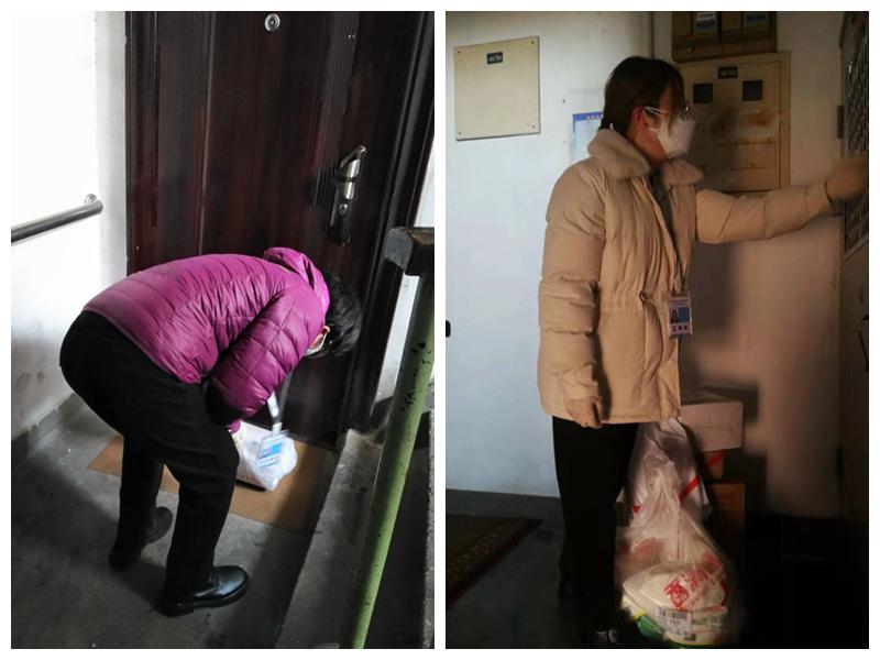 社区居委会通过干部分工包楼的形式,对自己所负责居民楼中隔离人员进行精准服务。针对不同年龄段的住户以及不同的需求,居委会也有针对性的服务工作。年龄较轻的住户大多采取网购的方式,居委会的工作人员在社区门口接到快递后会逐一联系住户确认地址,并第一时间安排工作人员,挨家挨户地送到住户的家门口,并电话通知隔离居民开门取物,确保全程无接触。针对年龄稍长一些的住户,居委会也提供代买的服务,在接到居家隔离居民的电话需求后,居委会工作人员会详细记录居民所需物品,外出帮忙采购,满足隔离居民日常需求。每次送完物资、快递等物品后也会做好相应记录,同样做到全程无接触。