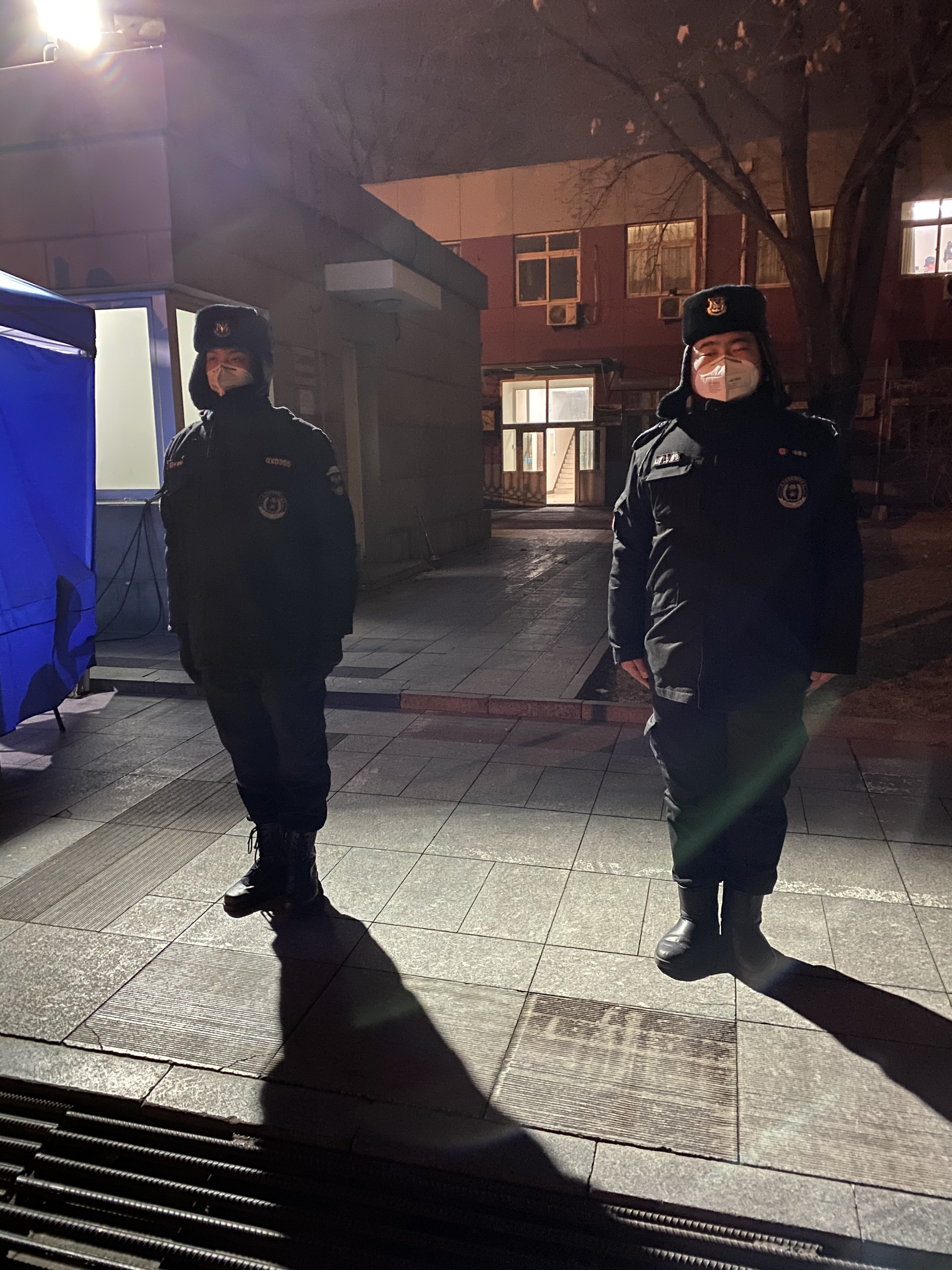 在防控工作中,保卫部与组织部、校医院、后勤管理处等部门密切配合,落实疫情防控工作,除在家自我观察人员外,全员动员全员上岗,先后参与了校门封闭值守、国家队训练基地区域封闭夜间施工、昌平区马池口镇临时隔离观察点值守、各主要办公区域、家属区颐清园社区疫情防控值守等安保工作。特别是近日,北京连降大雪,寒风刺骨,保卫部从领导到安保人员均栉风沐雪,不分白天黑夜地奋战在学校疫情防控的工作中。